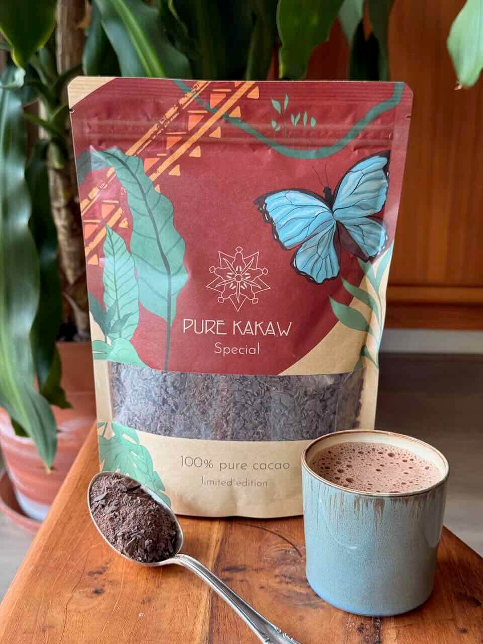 Onze flakes zijn gemaakt van hele cacaobonen die tot een fijne pasta zijn gemalen en lossen daardoor gemakkelijk op in je drankje. In tegenstelling tot cacaoblokken zijn deze flakes extra makkelijk in gebruik: gewoon scheppen en mengen voor een schuimige drank. Dezelfde kwaliteit ceremoniële cacao als een cacaoblok, maar bespaart je het gedoe van het snijden in kleine stukjes en bespaart je de rommel. Bewaar ze naast je koffie en thee thuis of op het werk om van te genieten als onderdeel van je dagelijkse routine.